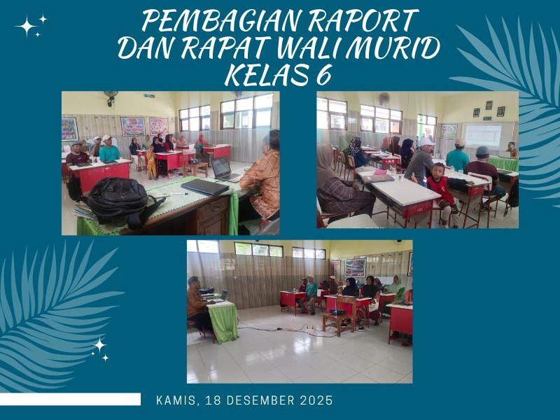 Pada tanggal 18 Desember 2025, telah dilaksanakan kegiatan pembagian rapor Semester I yang dirangkaikan dengan rapat wali murid kelas VI. Kegiatan ini bertujuan untuk menyampaikan hasil belajar peserta didik selama Semester I serta membahas persiapan menghadapi Ujian Akhir dan Ujian TKA kelas VI.